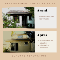 – rénovation intérieure et extérieure : La rénovation vise à améliorer l’état d’un bâtiment existant, que ce soit à l’intérieur (aménagement des pièces, favoriser l’éclairage naturel, changement des revêtements, etc.) ou à l’extérieur (ravalement de façade, remplacement de la toiture, etc.).